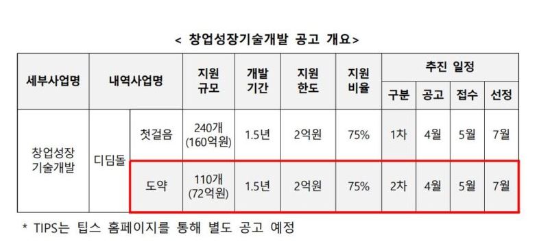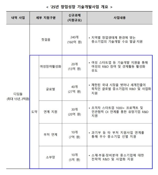 보다 자세한 공고 내용은 중소벤처기업부 홈페이지(www.mss.go.kr)와 범부처 통합연구지원시스템(www.iris.go.kr)에서 확인하실 수 있습니다. 박용순 중기부 기술혁신정책관은 “이번 도약R&D가 창업기업들의 기술혁신과 성장에 실제 도움이 되길 기대한다”고 밝혔습니다.